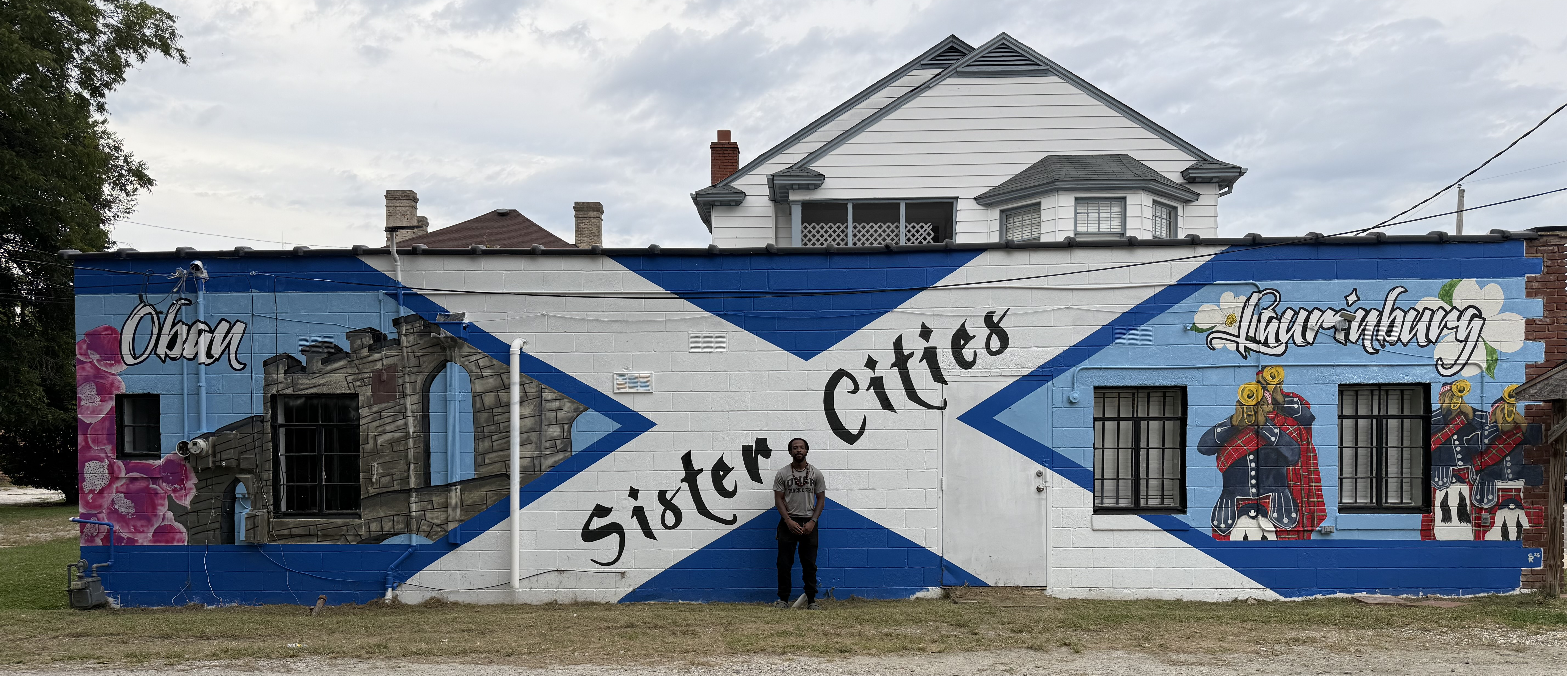 Our newest mural is complete! This will be a great backdrop for photos for our Oban exchange students. Thanks to our local artist, Shaquille Ray for bringing this to life. Mr. Ray is the Art teacher at Carver Middle School and is a talented artist. The Arts Council is proud to have sponsored four of our downtown murals.